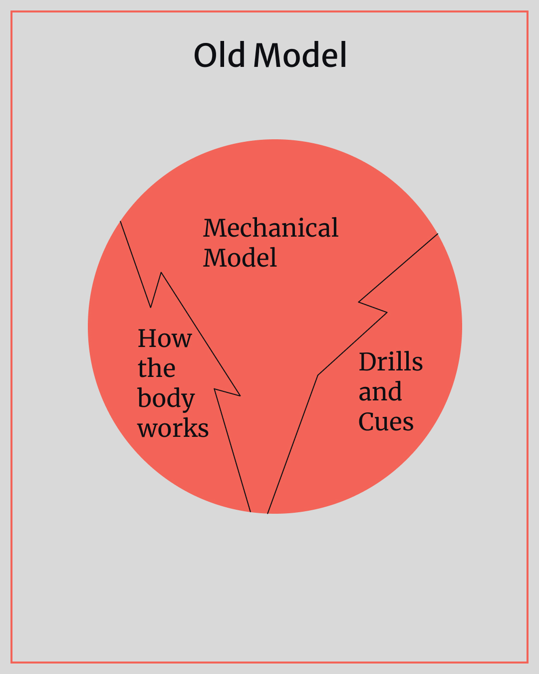They cover how the throw or swing works, what you should consider important information, how to think about the specific mechanics, and how those mechanics should be taught and practiced through drills. But this all-in-one model is too big and doesn’t do justice to the amount of valuable information available and how it can be used.